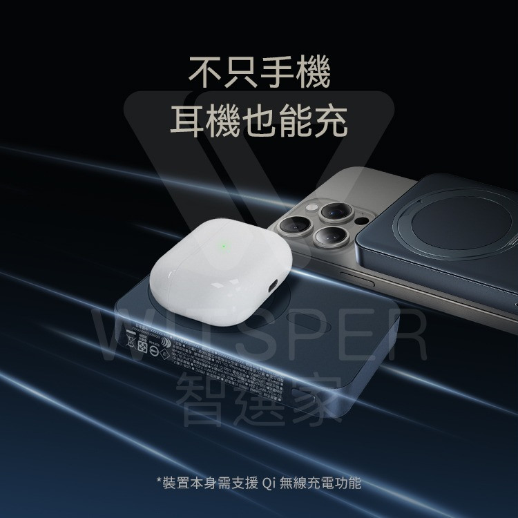 正版 Qi2 快充認證,支援最高 15W 無線充電;除手機外,亦可為耳機等裝置充電