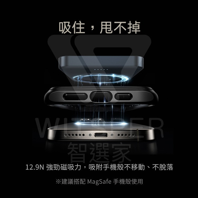 市面最強 12.9N 強勁磁力,牢牢吸附手機殼,充電不間斷
