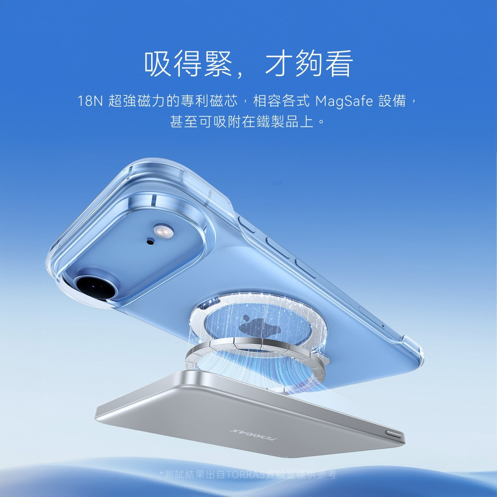 18N 超強磁力,相容各式 MagSafe 卡包、行動電源、充電盤,亦可吸附於冰箱等鐵製品之上