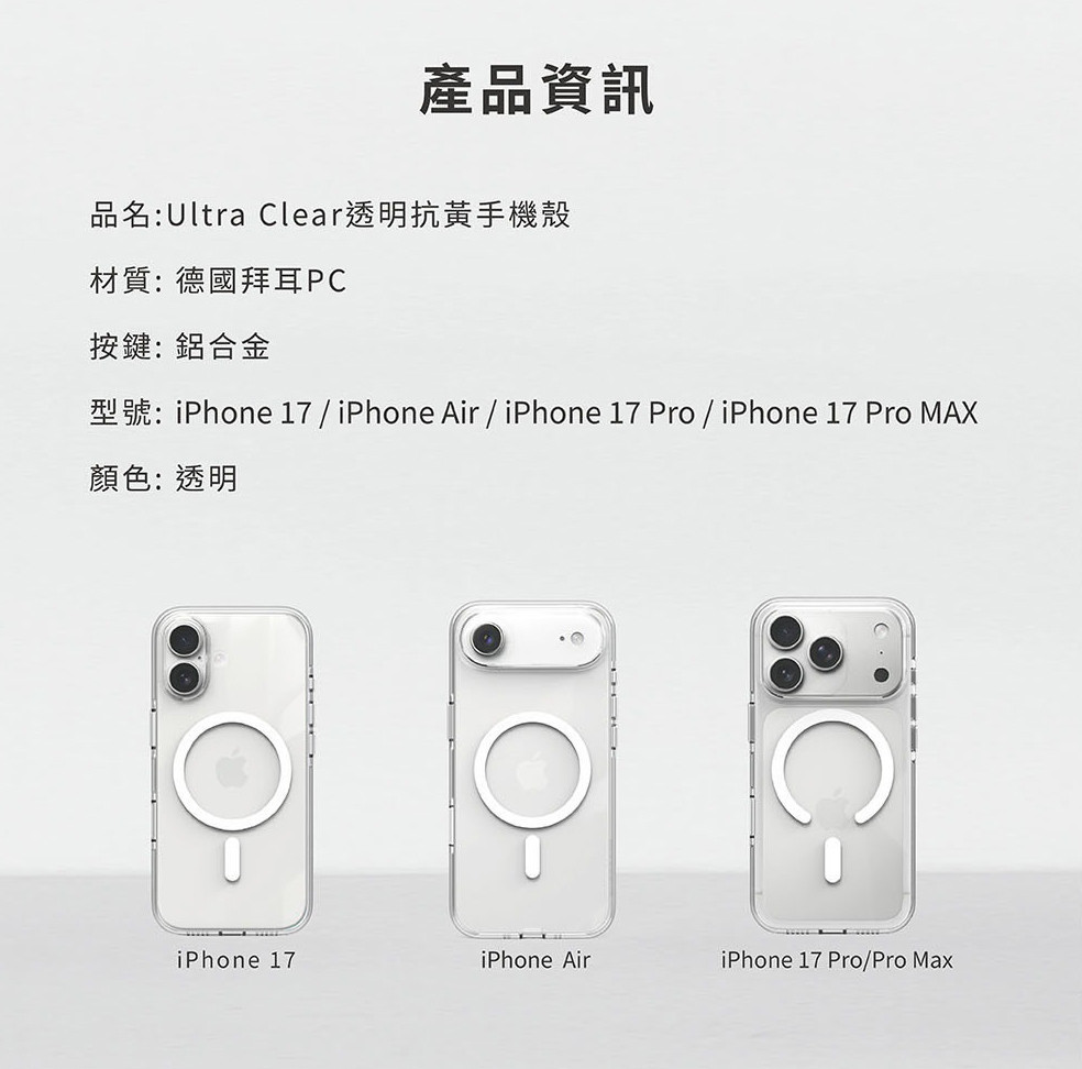 PUREGEAR Ultra 抗黃 保護殼 磁吸 透明殼 Magsafe iPhone Air 17 Pro Max