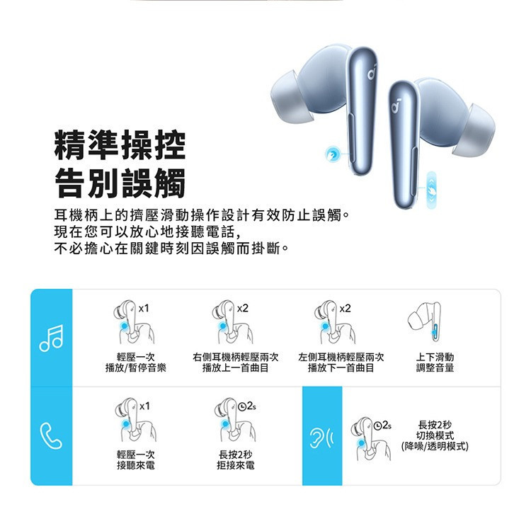 按壓滑動操控有效防誤觸,放心接打電話、調整音量、切換歌曲