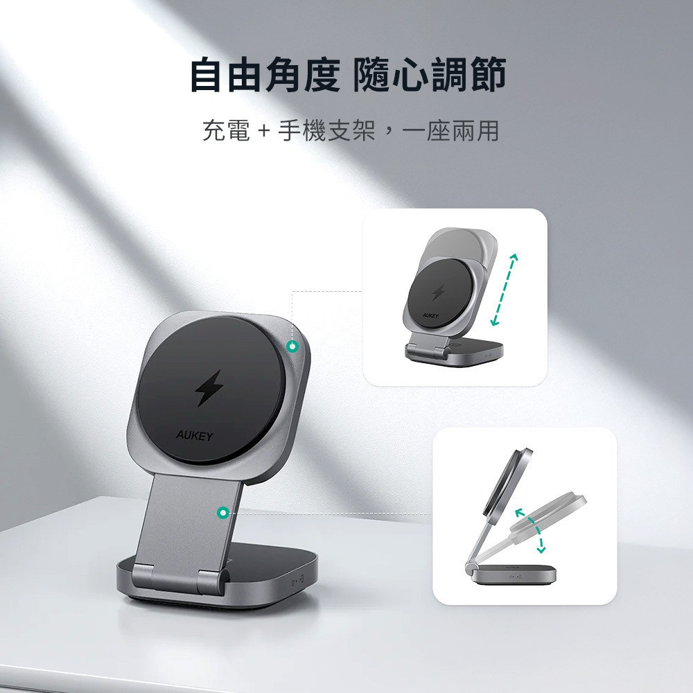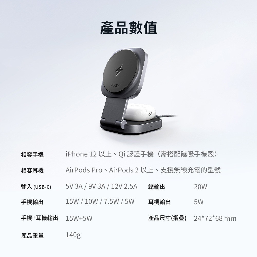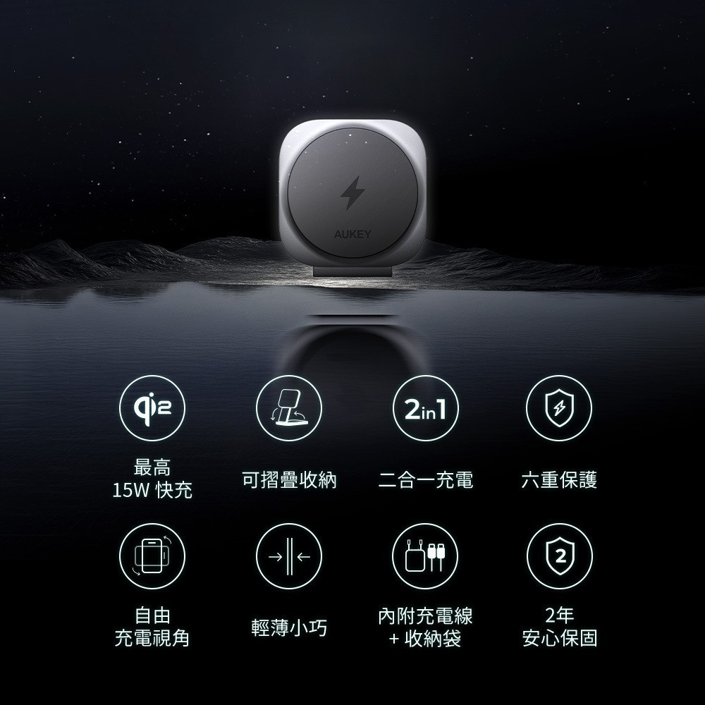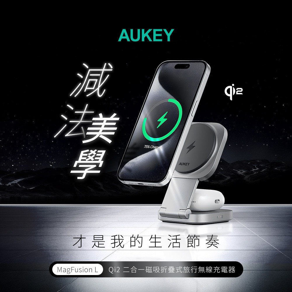 AUKEY MagFusion L 二合一 Qi2 磁吸 折疊式 無線 充電器 iPhone 17 16 15